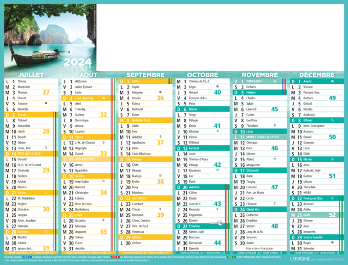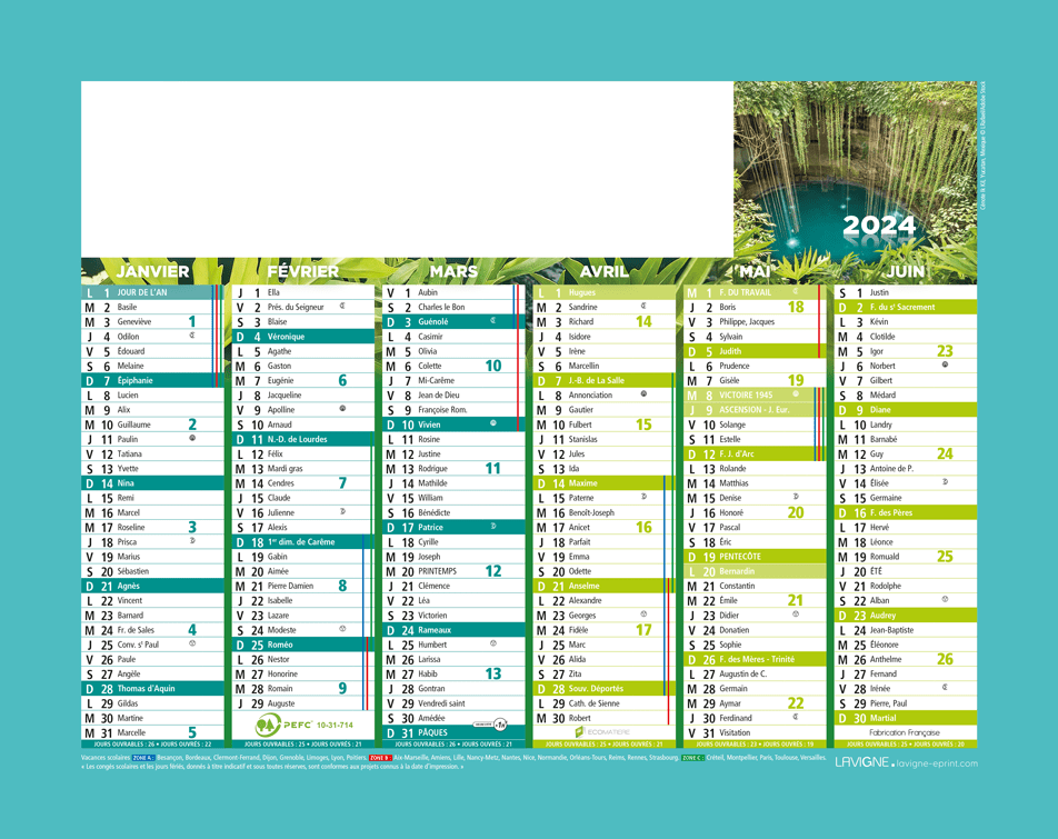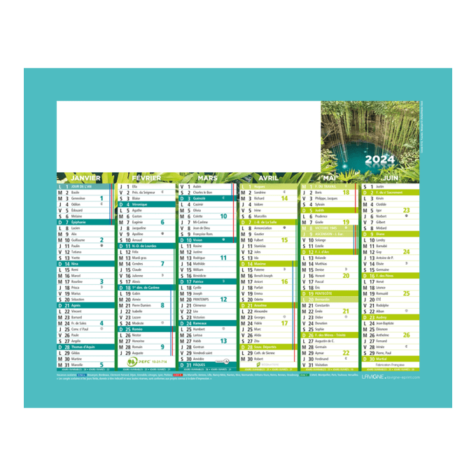 Calendrier bancaire demi format