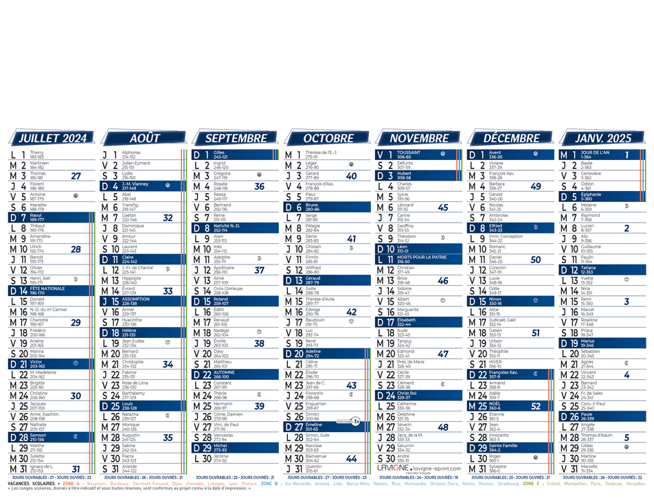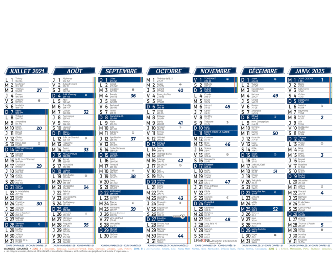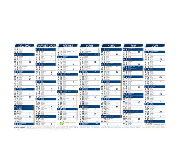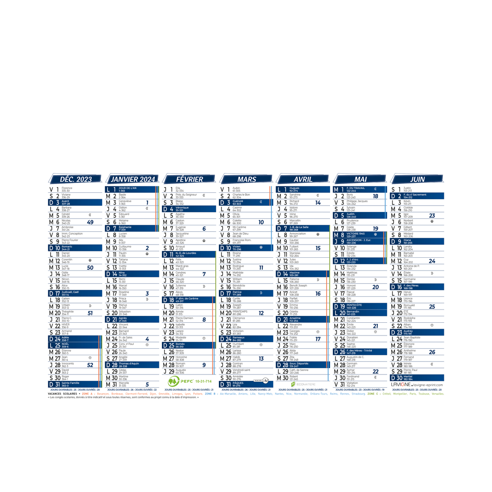 Calendrier bancaire demi format