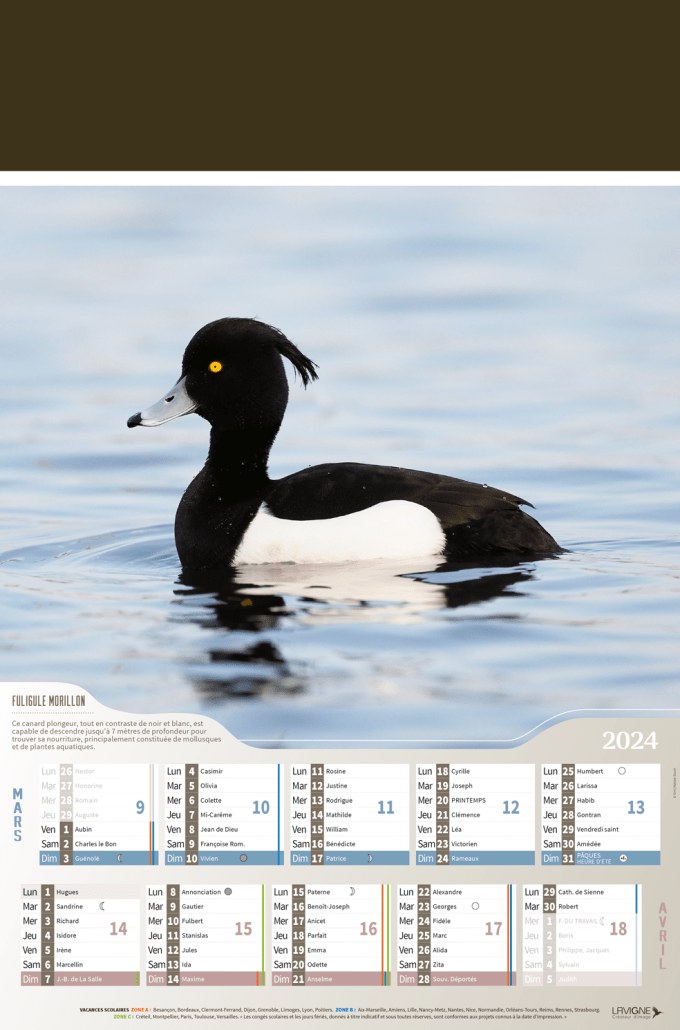 Calendrier bancaire demi format